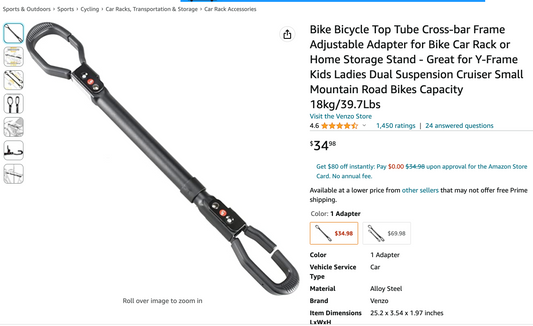 $7 off!!! Bike Bicycle Top Tube Cross-bar Frame Adjustable Adapter for Bike Car Rack or Home Storage Stand - Great for Y-Frame Kids Ladies Dual Suspension Cruiser Small Mountain Road Bikes Capacity 18kg/39.7Lbs