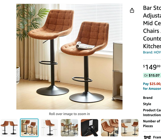Bar Stools Set of 2, Counter Height Adjustable Swivel Stool with Back Mid Century Faux PU Leather Bar Chairs Armless Hydraulic Kitchen Counter Bar Stool Synthetic for Kitchen Island Café Bars