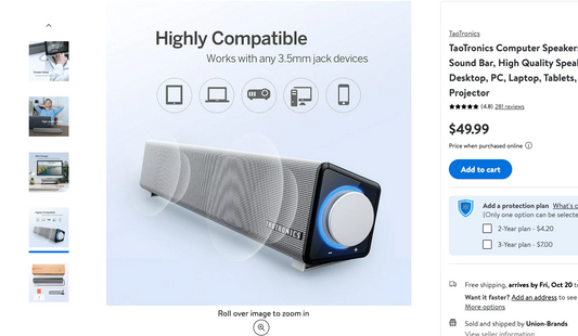 TaoTronics Computer Speakers, Wired Sound Bar, High Quality Speakers for Desktop, PC, Laptop, Tablets, Cellphone, Projector