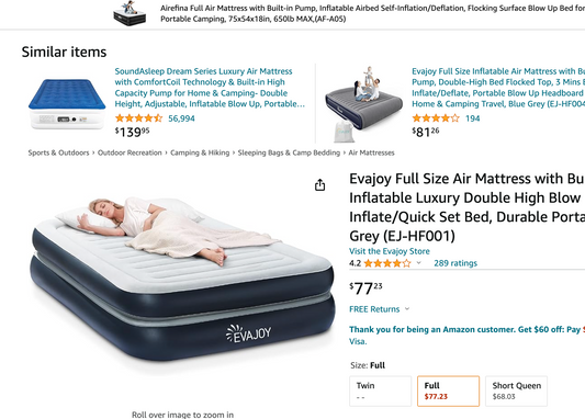 Evajoy Full Size Air Mattress with Built in Pump, 18'' Inflatable Luxury Double High Blow Up Mattress, Easy to Inflate/Quick Set Bed, Durable Portable Waterproof Blue & Grey (EJ-HF001)