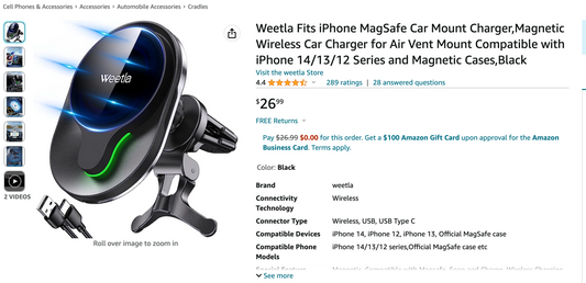 50% off Amazon!!! Weetla Fits iPhone MagSafe Car Mount Charger,Magnetic Wireless Car Charger for Air Vent Mount Compatible with iPhone 14/13/12 Series and Magnetic Cases,Black
