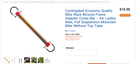 Cyclingdeal Economy Quality Bike Rack Bicycle Frame Adapter Cross Bar - for Ladies Bike, Full Suspension Mountain Bike Without Top Tube