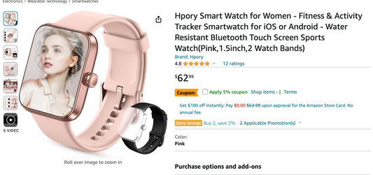 Hpory Smart Watch for Women - Fitness & Activity Tracker Smartwatch for iOS or Android - Water Resistant Bluetooth Touch Screen Sports Watch(Pink,1.5inch,2 Watch Bands)