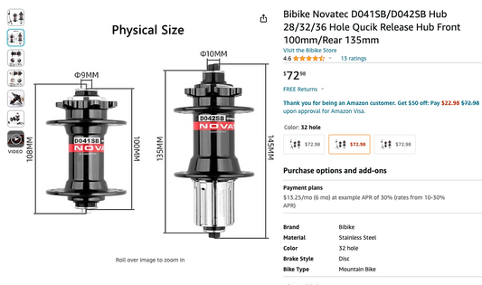 Novatec D041SB/D042SB Hub 32 Hole Qucik Release Hub Front 100mm/Rear 135mm