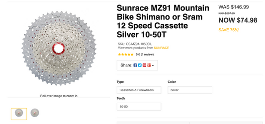 Sunrace MZ91 Mountain Bike HG 12 Speed Cassette Silver 10-50T
