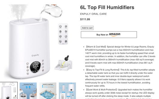 ENPULY 6L Top Fill Warm and Cool Mist Humidifiers for Bedroom/Large Room(Max 861sq.ft), 12 Levels Dual Mists Air Humidifier, Essential Oil Tray, Sleep Mode, 12 Hrs Timer, Child Lock(White)