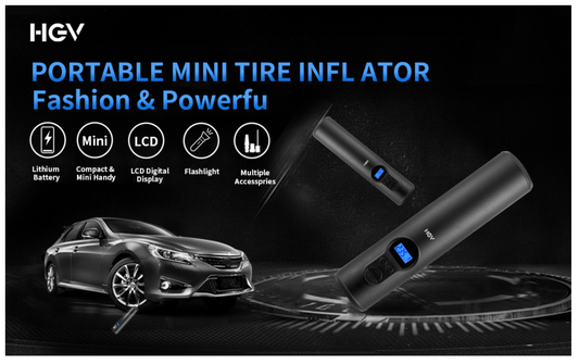 HGV Mini Tire Inflator Digital Portable Air Compressor 12V, Wireless Version 2000mAh Rechargeable Lithium ion Battery, Suitable for car/Bicycle air Pump, with LED Lighting