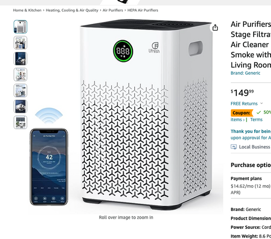 Air Purifiers For Bedroom, 2000 ft, 24dB, 3-Stage Filtration System, H13 True HEPA Filter Air Cleaner Remove 99.97% Dust Pollen Smoke with Auto Mode, Sleep Mode, for Office Living Room