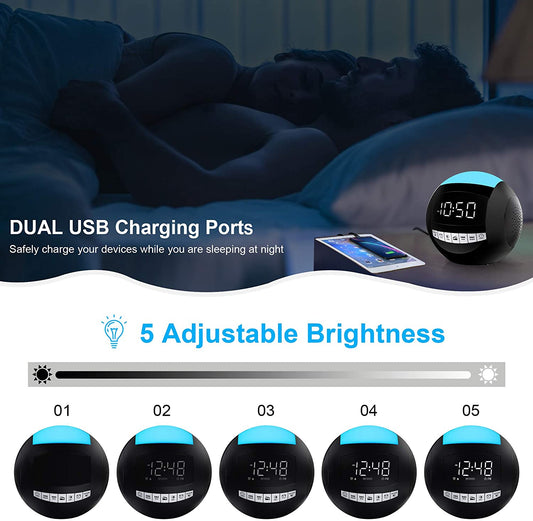Clock Radio,Alarm Clock for Bedroom,Battery Operated/Plug in Digital Clock with FM Radio,Dual USB Ports,Sleep Timers, 7 Colors Night Light,Snooze,Dimmer,LED Display for Heavy Sleepers Kids Nightstand