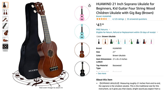 HUAWIND 21 Inch Soprano Ukulele for Beginners, Kid Guitar Four String Wood Children Ukulele with Gig Bag (Brown)