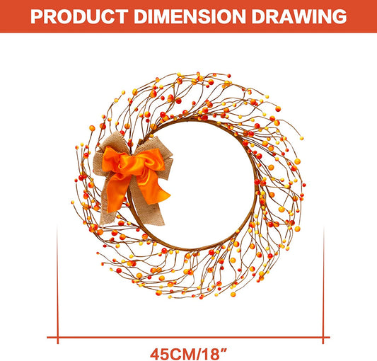 RoseCraft 17 Inch Fall Wreath, Artificial Autumn Berry Front Door Wreath Decor