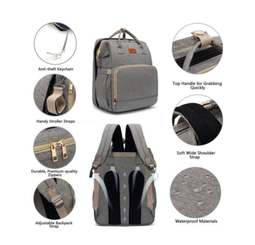 Diaper Bag Backpack with Bassinet black and silver