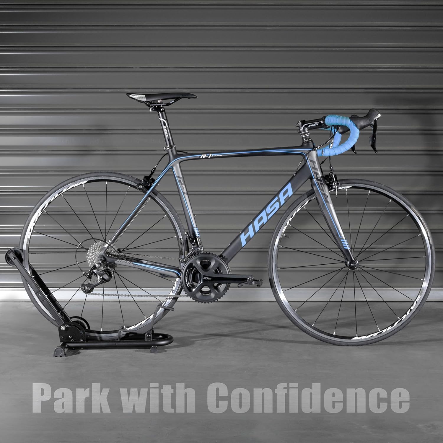 - MOST STABLE BICYCLE STAND – The ultimate stable bike rack for garage parking. With three contact points securing the tires, it's far superior to other bicycle racks that only support the frame, rim, disc rotor, or derailleur at one or two points. The deeper holder ensures the bike’s front or rear wheel stays firmly in place. Additionally, the stylish dynamic base design prevents the bike from tilting unless significant force is applied.